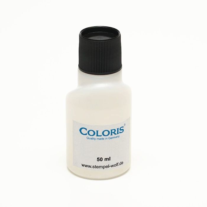 Der Coloris Verdünner 990 ist ein alkoholhaltiges Lösungsmittelgemisch zum Verdünnen der Stempelfarbe 990 und zur Einstellung der gewünschten Viskosität. Selbst eingedickte Farbe im Stempelkissen ist durch Zugabe geringer Mengen an Verdünnung manchmal wieder auffrischbar.